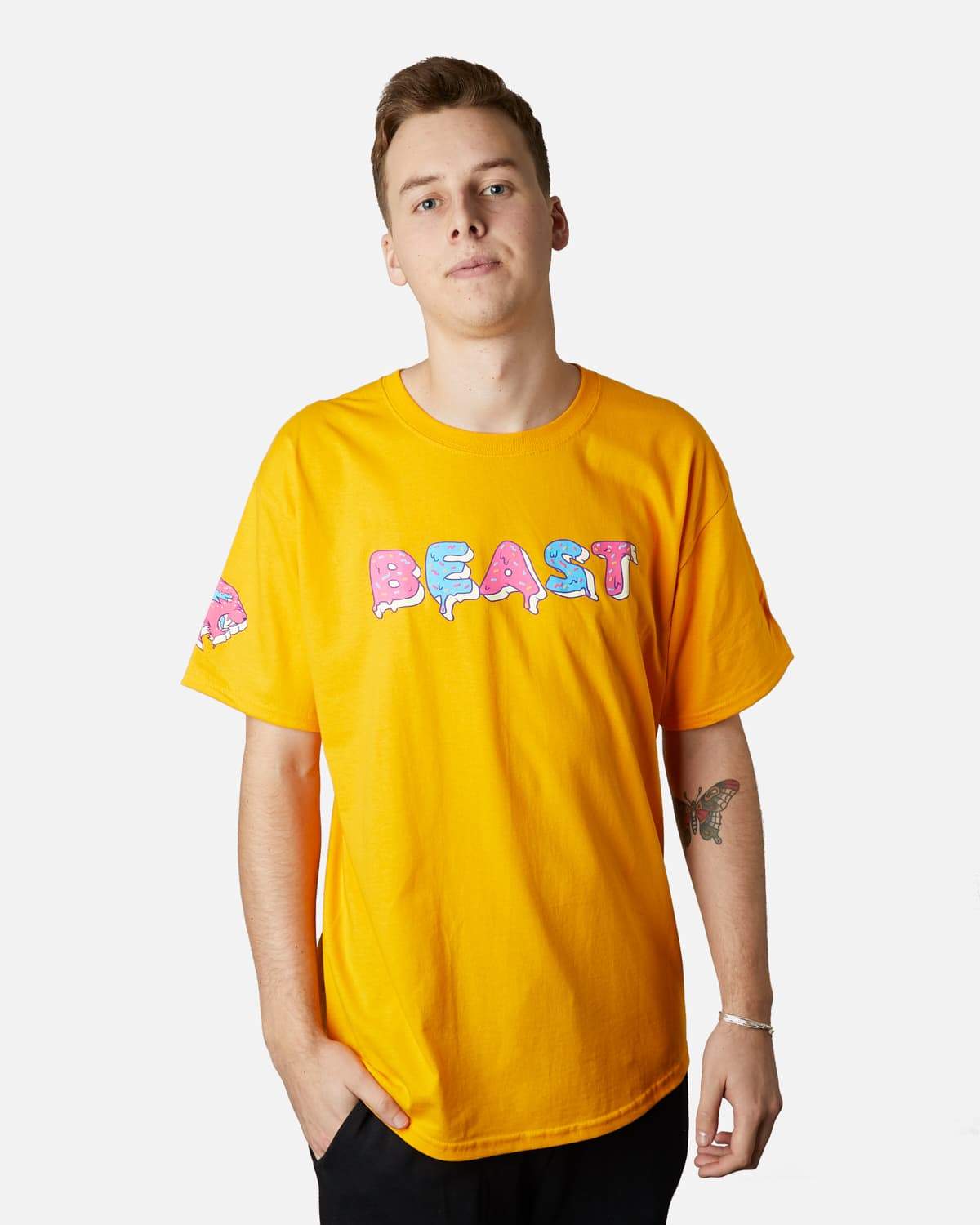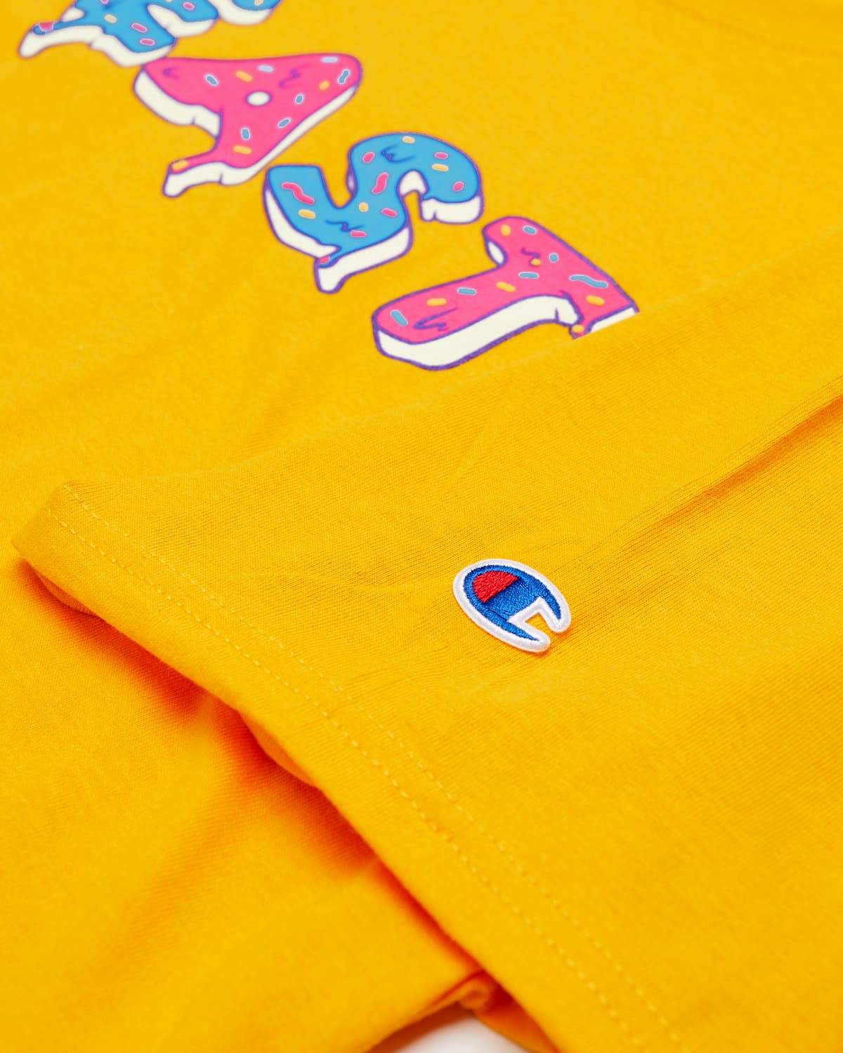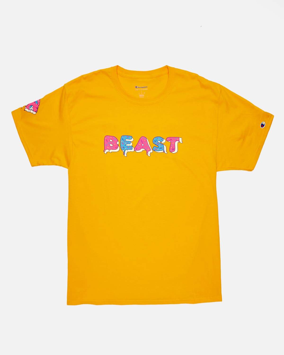 • Printed on a gold, 100% cotton Champion tee