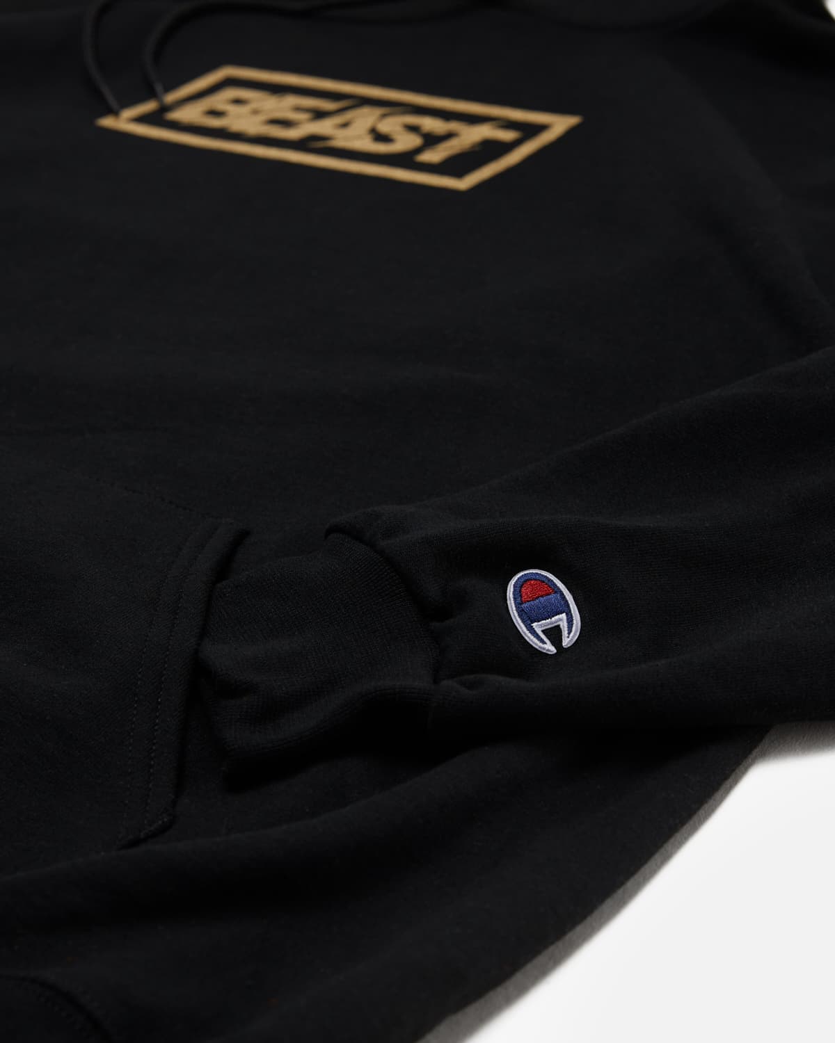 • Printed on a black, 50% cotton, 50% polyester Champion pullover hoodie