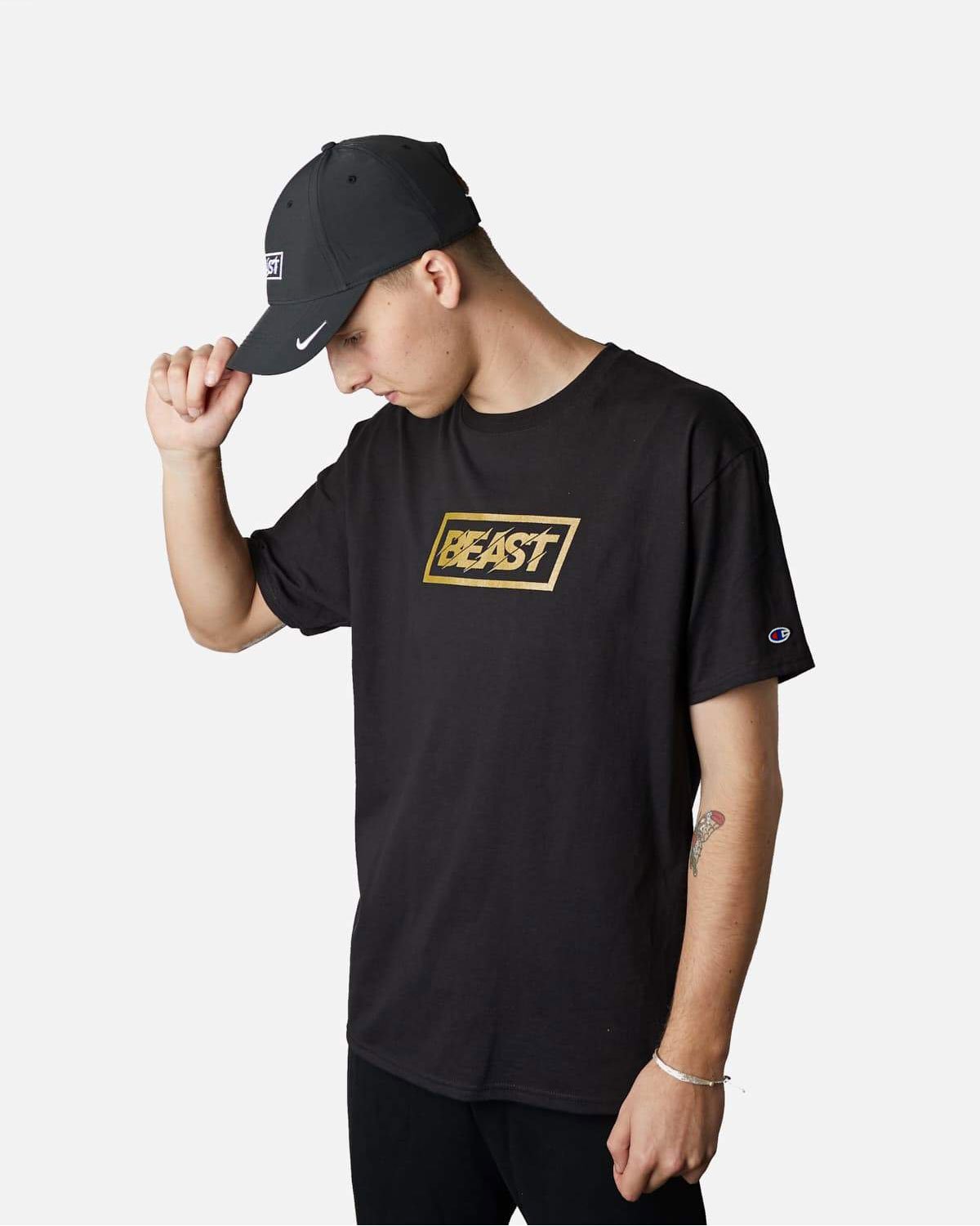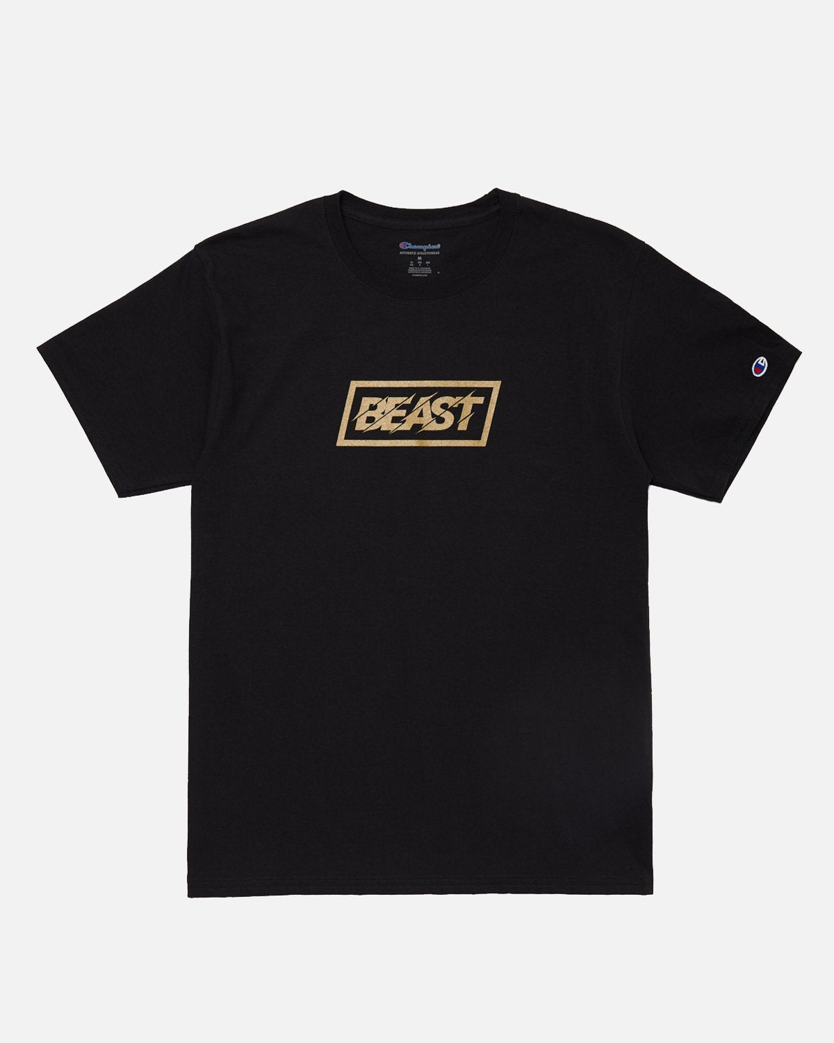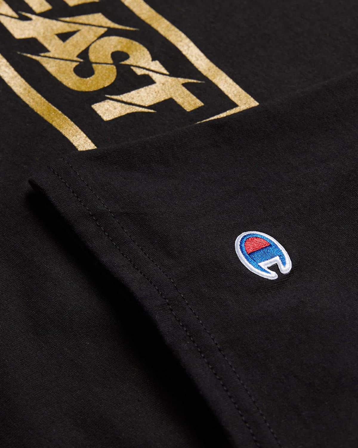 • Printed on a black, 100% cotton Champion tee