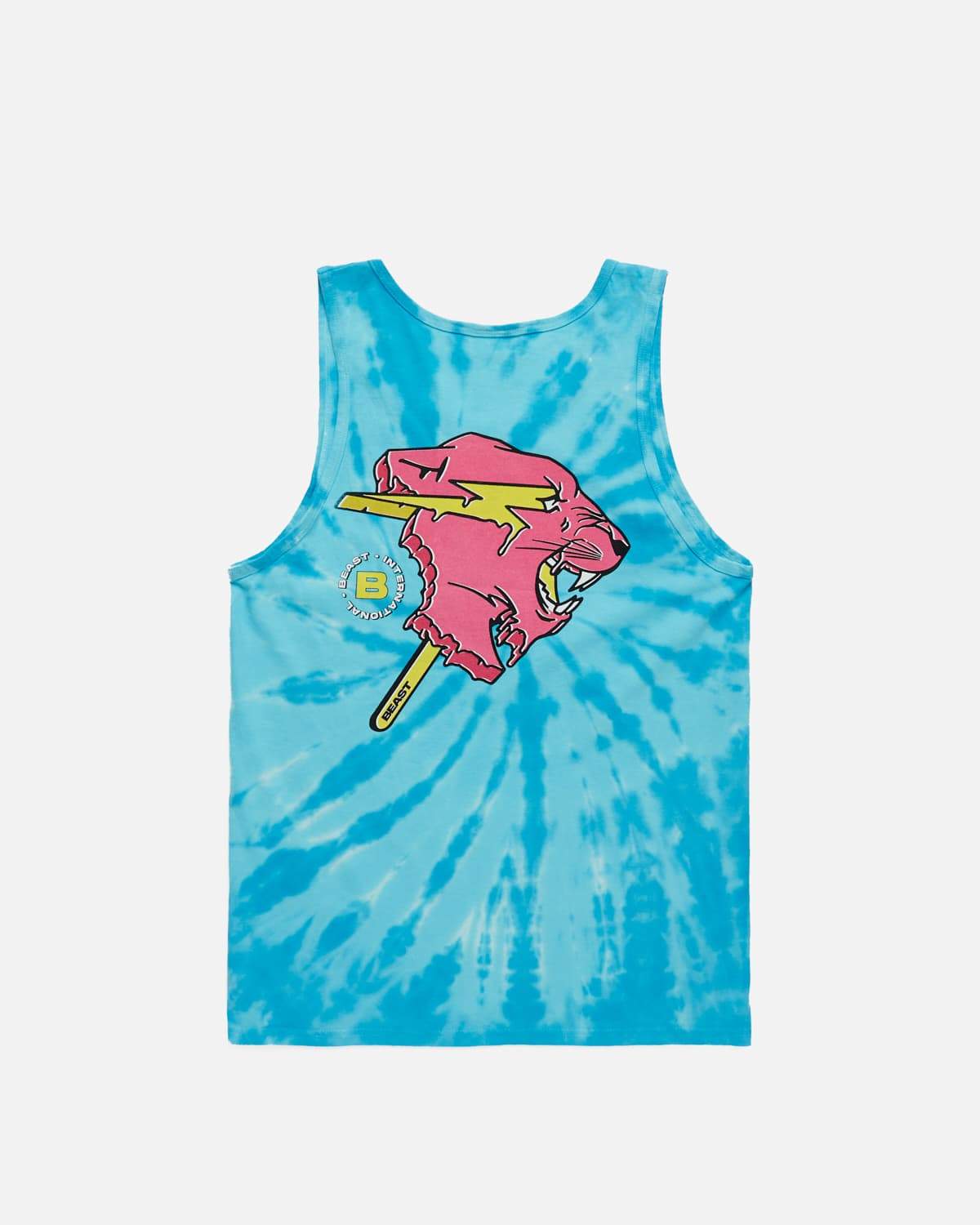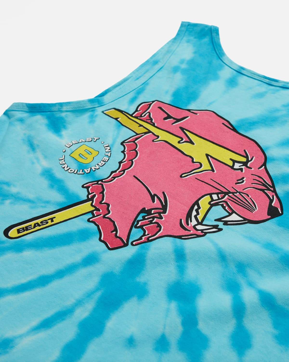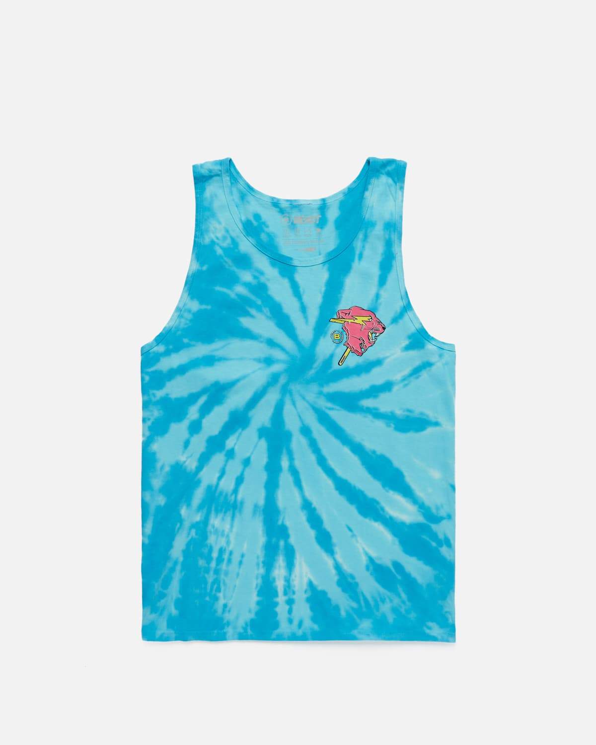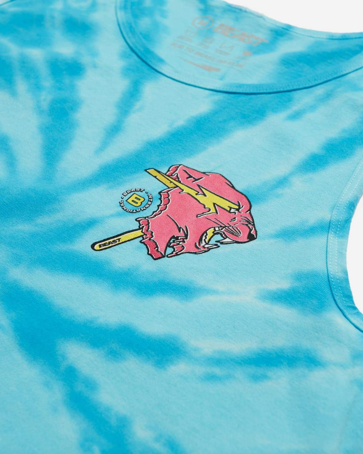 • Printed on a turquoise, 100% cotton, spiral tie dye tank top